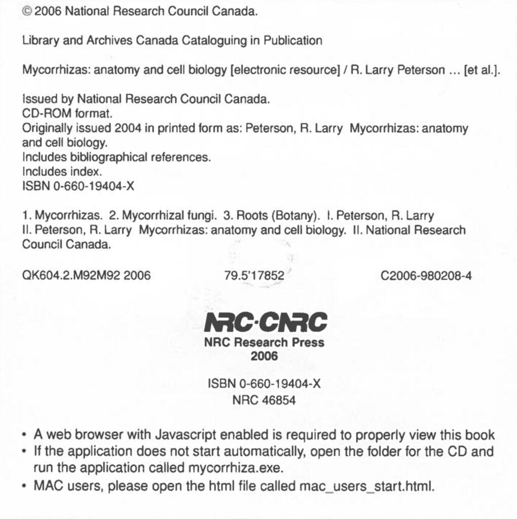 This CD presents a visual description of all mycorrhiza categories and includes detailed structural information obtained by light microscopy, scanning electron microscopy, transmission electron microscopy, and laser scanning confocal microscopy. It is intended as a supplementary resource of images, which can augment any course of study that deals with various aspects of mycorrhizas. It is designed so that images can be uploaded into presentations for teaching and seminars.